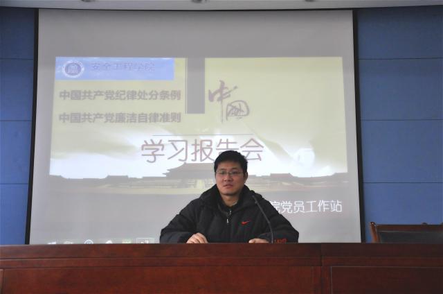 学生党员工作站组织全体本科生党员学习了新修订的《中国共产党廉洁自律准则》和《中国共产党纪律处分条例》。院党委副书记钱雄作专题辅导报告。党员工作站站长刘昱君主持报告会。