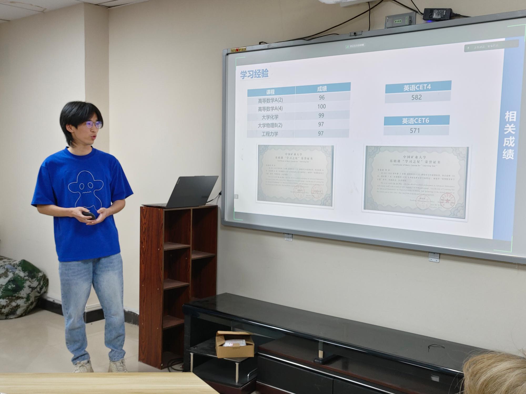 活动伊始,俞嘉濠以“以力胜智,勇攀高峰”为主题,结合实际经验,向同学们讲述自身的发展经历。在学习经验方面,俞嘉濠在专注集中的课堂学习、深入理解的课后复习、准确高效的题目训练等三个方面向同学们提出具体的实践方法,并展示相应的学习成果。俞嘉濠从学生工作角度出发,阐述了自身的履职经历,鼓励同学们积极参与学生工作,提升综合能力。在科创竞赛方面,俞嘉濠在个人和团队竞赛两个方面展示了丰硕的参赛成果,并通过鞭辟入里的分析向同学们展示了科研竞赛的独特价值。最后,在生活经历方面,俞嘉濠展示了自身在运动、动漫、手工、吉他、摄影等多方面的心得体会。接着,秦东子聚焦于班级建设展开详细剖析,向同学们介绍了a片无码