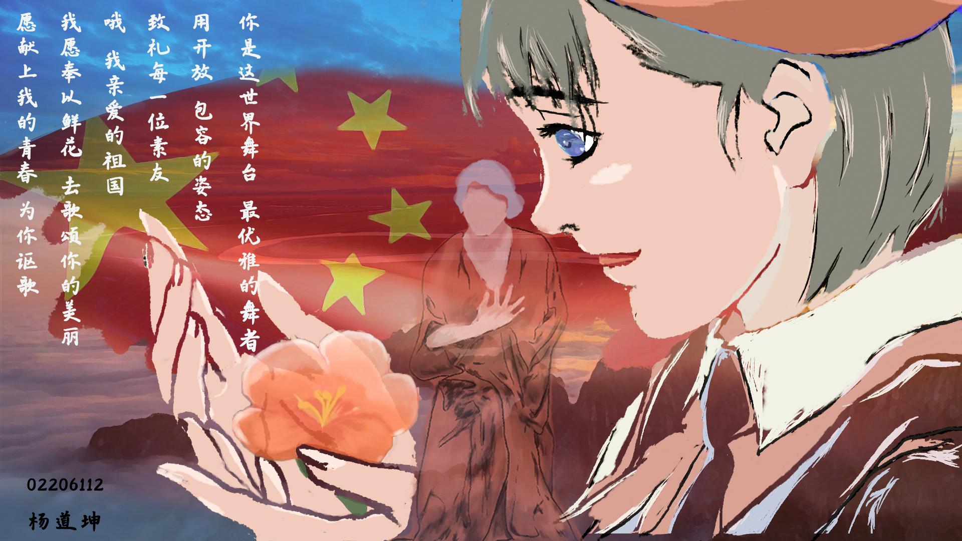 通过线上平台宣传并收集参赛作品,各位参赛选手的作品也让人印象深刻,杨道坤同学将中国标识设计在了动漫人物上,五星红旗作为其皮肤的颜色,林涵懿、顾珮馨的书法作品行云流水,落笔如烟云,朴实无华而兼纳乾坤。比赛最后评委对参赛作品进行评选,并将获奖作品通过线上平台展示。