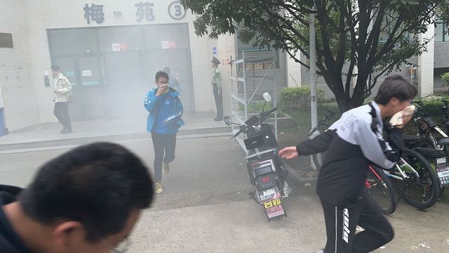 2021级新生在梅苑、竹苑举行了紧急疏散应急救援演练。本次演练由学工班主任、团委书记刘世通,辅导员卢笛担任现场指挥。