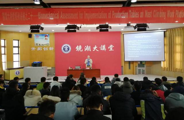 邀请美国西弗吉尼亚大学Myers,warren R(迈尔斯)博士在镜湖大讲堂做主题为Biomechanical Assessment for Implementation of Production Tables on Mast Climbing Work Platforms的学术报告学术报告。出席本次报告会的有国际班老师朱金佗,辅导员排日代姆、吕鑫、王蓉,团委学生副书记邵旭。2018级、2019级本科生参加本次学术报告。