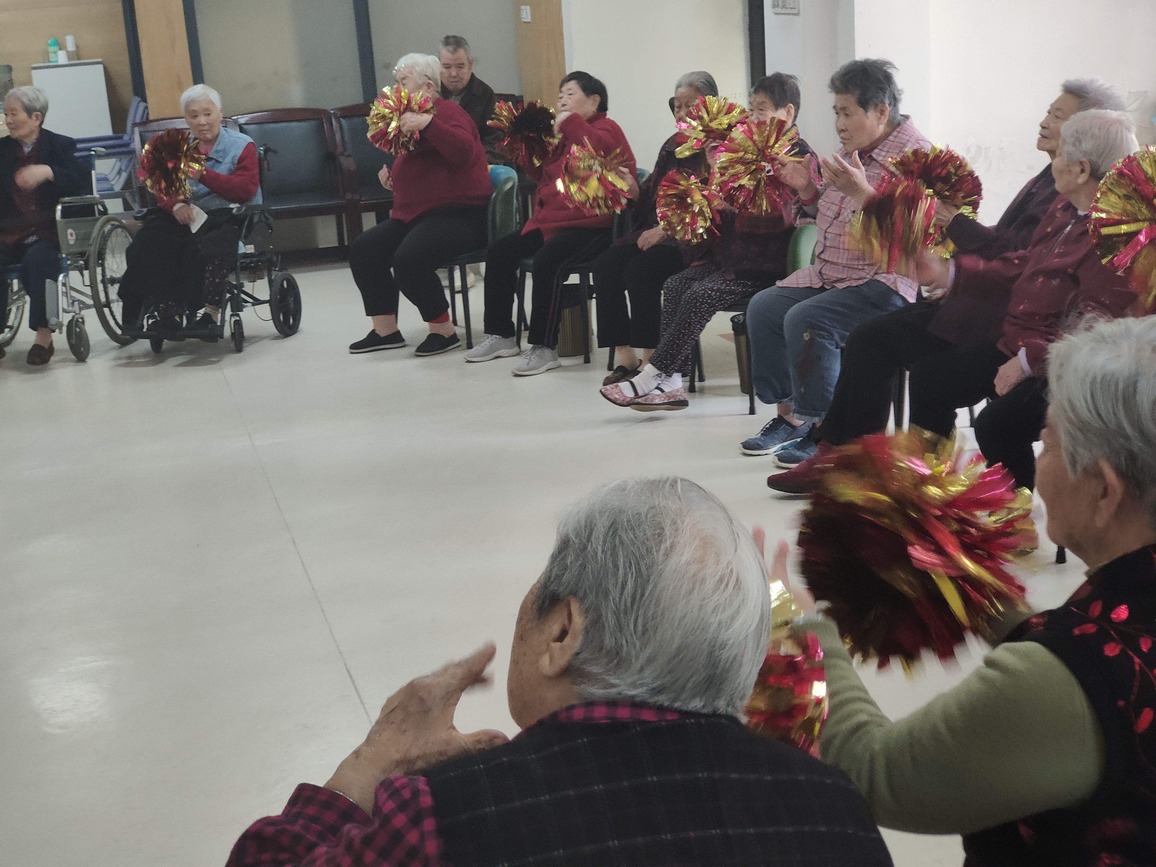 此次活动前,志愿者们展开收集工作,鼓励同学们将对于老人们的温情与关怀融进书信、手抄报、贺卡等物品中。活动当天,志愿者们首先介绍了来意,随即献上准备好的礼物,为老人们送上重阳节的祝福。对于志愿者们的到来,老人们十分高兴,纷纷热情回应。之后,志愿者们带领老人们做了一些简单有趣的小游戏,帮助老人们活动身体。最后,志愿者们献上了节目表演,用歌声唱出对老人们的关爱。观看了志愿者们的精彩演出,老人们受到青春活力的感染,也以歌声和舞蹈表达了他们的快乐,现场洋溢着欢声笑语。