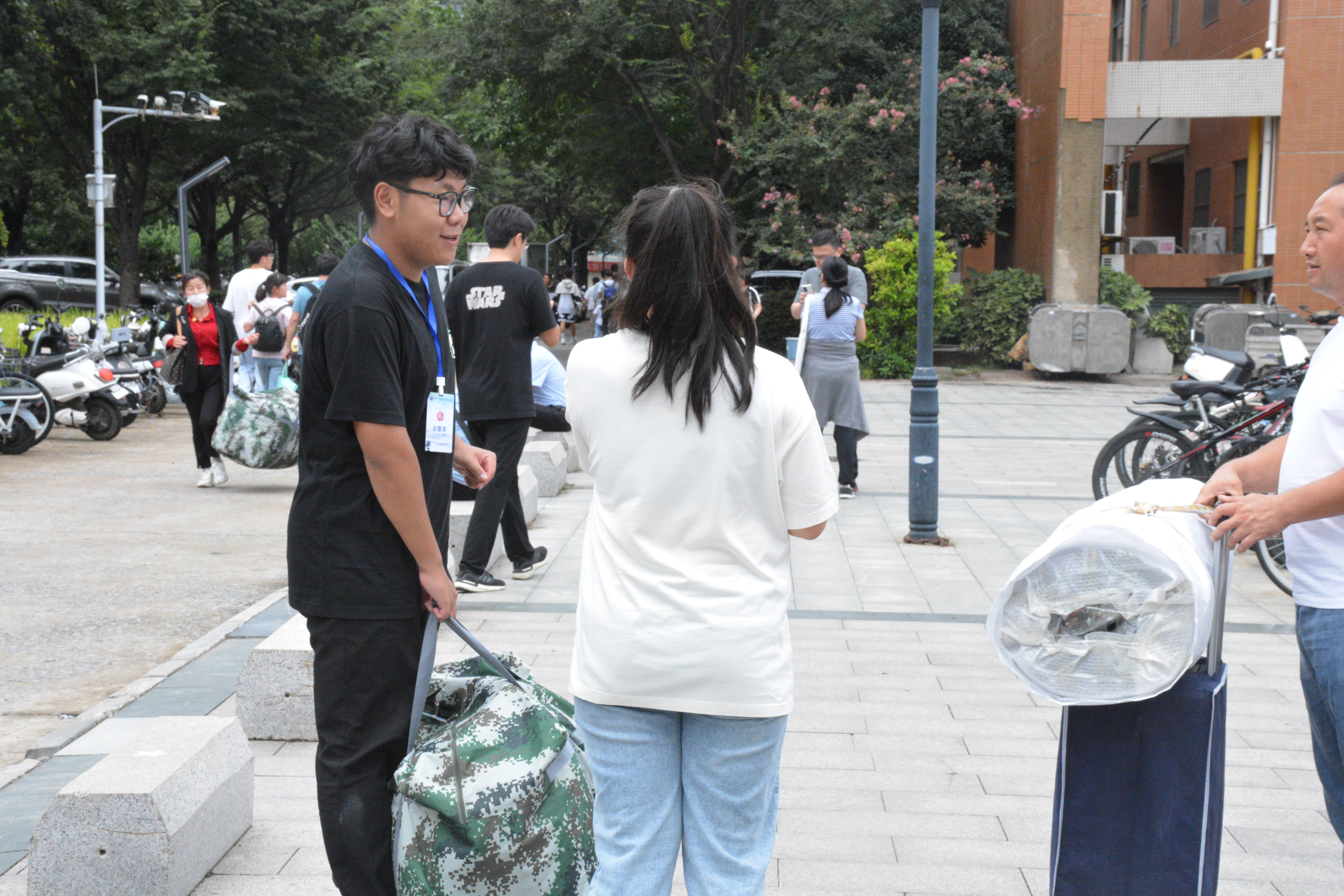 迎新工作站进行现场指导,并与新生及家长进行交流。唐俊、陈小雨、冯小军等新生班主任也先后来到迎新现场与新生亲切交流,了解新生适应情况并鼓励他们尽快融入大学生活。