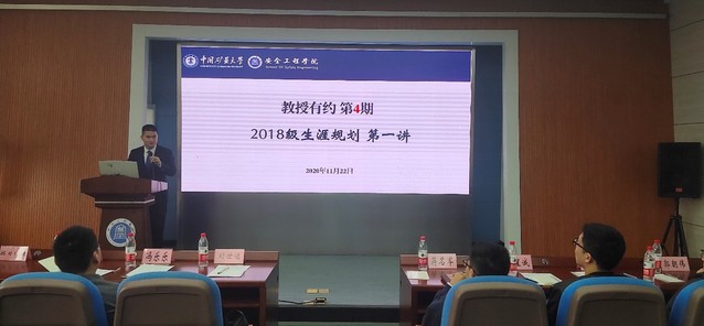 首先,刘世通老师对到场的老师与同学表示欢迎,并介绍了教授有约系列活动情况。接着,王青祥教授讲述了本科阶段转专业到安全后的学习时光及直博期间的科研经历,并就本科时如何与同学和老师进行良好沟通、加入周福宝教授课题组后如何开始科研工作及在哈工大直博期间的成长经历进行了分享,并告诫同学们要珍惜时光,勤奋好学,杜绝浮躁,始终把学习当做第一要务。冯乐乐老师则结合自己在研究生阶段的经验与体会进行了分享,他鼓励同学们要积极参加学术交流,在与同行交流过程中了解热门课题发展情况。