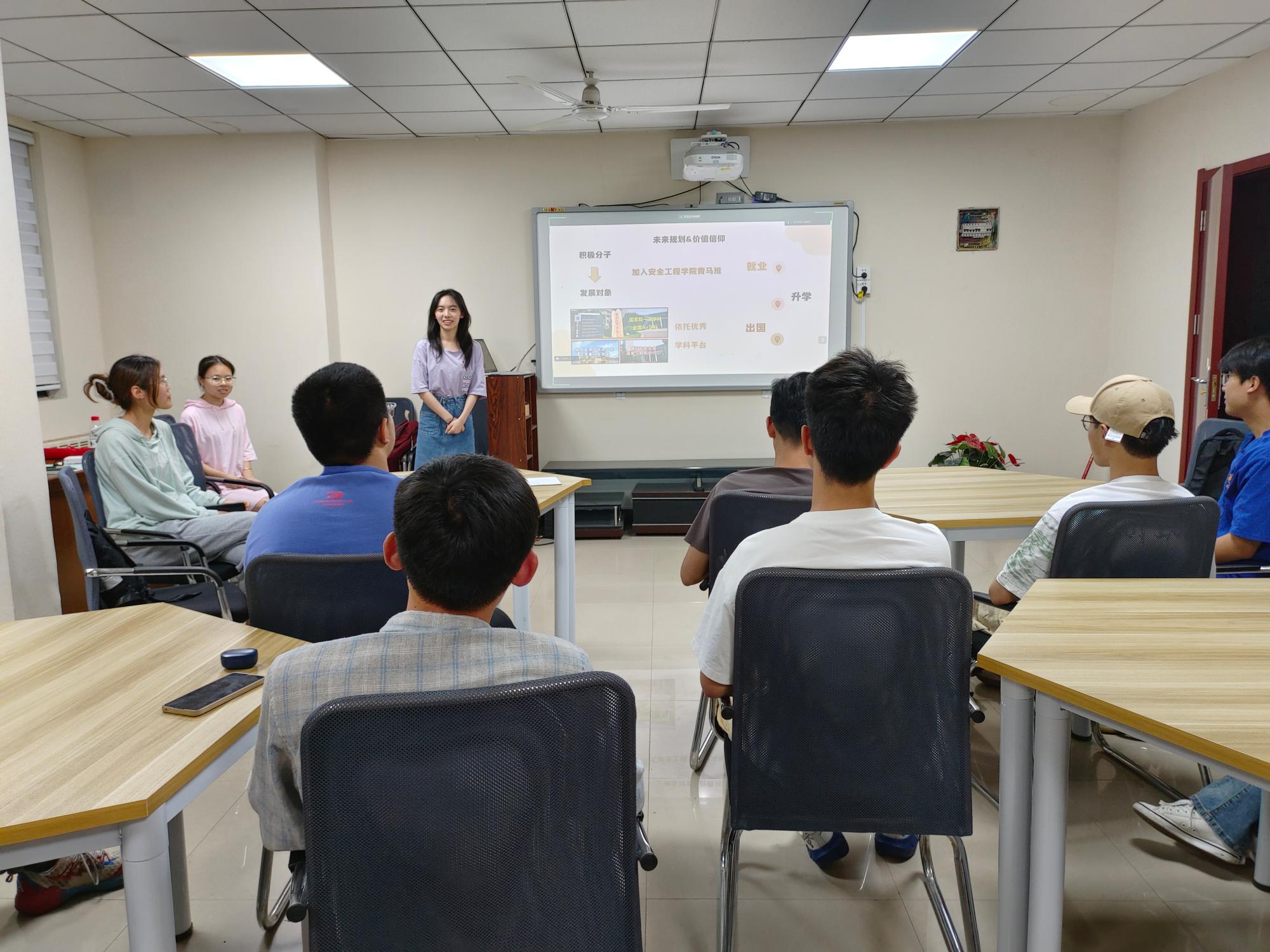 活动伊始,范钰雪从课堂笔记整理、网上课程学习、学习资料归纳和考前复习计划等多方面详细向与会同学讲述了高效的学习方法和有效信息的收集;在学生工作方面,她强调在学有余力的前提下,积极参与学生工作可以提升个人综合能力并拓宽社交范围;在科研竞赛方面,范钰雪向同学们列举了参与竞赛的多种方法以及接触科研的三种基本途径,希望同学们勇于投身科研,努力提升专业能力。接着,叶雨萱以初入大学的迷茫焦虑展开本次的主题宣讲。叶雨萱简要介绍了自身的学习成绩和科创比赛的多项成果,着重强调提升学习成绩的基石作用。随后,针对学生工作和社会实践,她向与会同学展示了去年参加社会实践的照片,讲述了参加社会实践的心得感悟,鼓励同学们积极投身于社会实践,提升价值感和获得感。活动最后,范钰雪、叶雨萱就大家提出的问题进行细致耐心的解答。