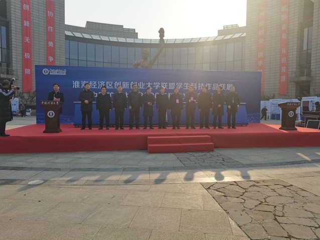 12月18日下午两点半,淮海经济区创新创业联盟大学生科技作品联展暨2020年科技文化节开幕式于a片无码 南湖校区北门火炬广场举行,a片无码 科协积极组织参加。