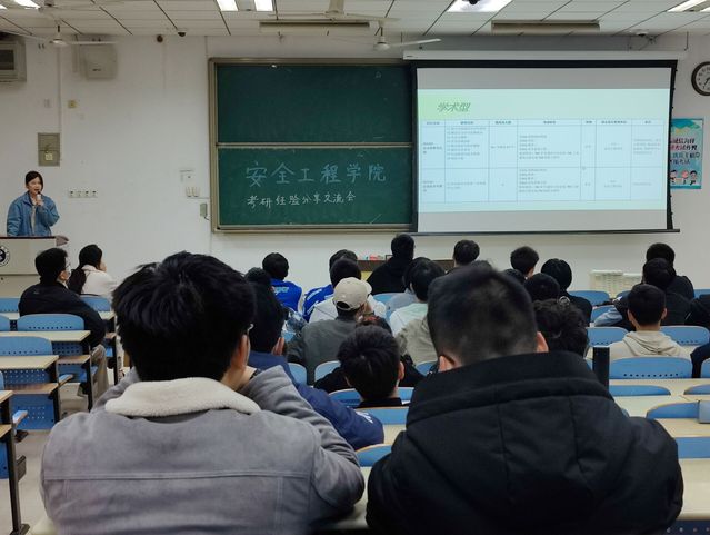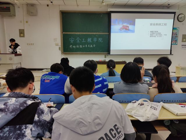 首先分享的是消防专业的王玉珊同学,她分享了自己的学习经历,从想要保研到明了自己保研可能性微乎及微再到坚定选择考研,无疑她的经历契合很多同学的实际情况,为同学们备战考研提供了借鉴,鼓舞了同学们的考研信心。王玉珊同学主要分享了自己的学习方法,包括信息获取、参考书目和导师选择等方面。王昊同学分析了学硕和专硕的区别,提供了制定计划的方式,以及如何在考研过程中检测自己,调整自己,同时提醒同学们要静心踏实,切勿假装努力。安全专业的龙昭熹同学,提出了各科复习的技巧及推荐复习时间和网课老师推荐,重点针对同学们的考研规划及细节。张国富同学从总体时间规划、网课选择推荐和全年用书推荐三方面进行概述,并提醒同学们重视考研的报名和确认时间。他劝慰道,考研中存在消极情绪是很正常的现象,我们应该正确看待,调整好自己的心态。顾睿亭同学从备考计划、时间计划、作息计划等方面入手,给同学们提供了很多有益的建议。关于复试,顾睿亭同学强调一定要切合实际,不要无中生有。考研专家杨恩权为同学们带来更具专业性的指导建议,囊括许多有用的数据和信息查找的方式,对同学们的考研规划进行了全面系统的分析整理。