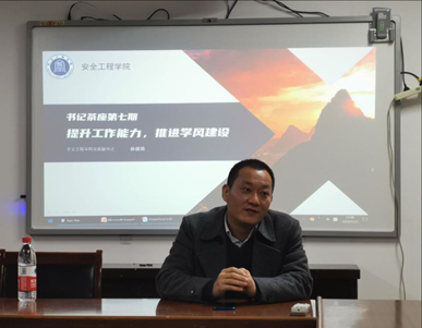 于梅三党工委举行第七期书记茶座,本次活动主题为“提升工作能力,推进学风建设”。安全工程学院党委副书记孙留涛主讲,学工办主任刘世通、2019级辅导员王蓉及2019级全体学生干部参加。
