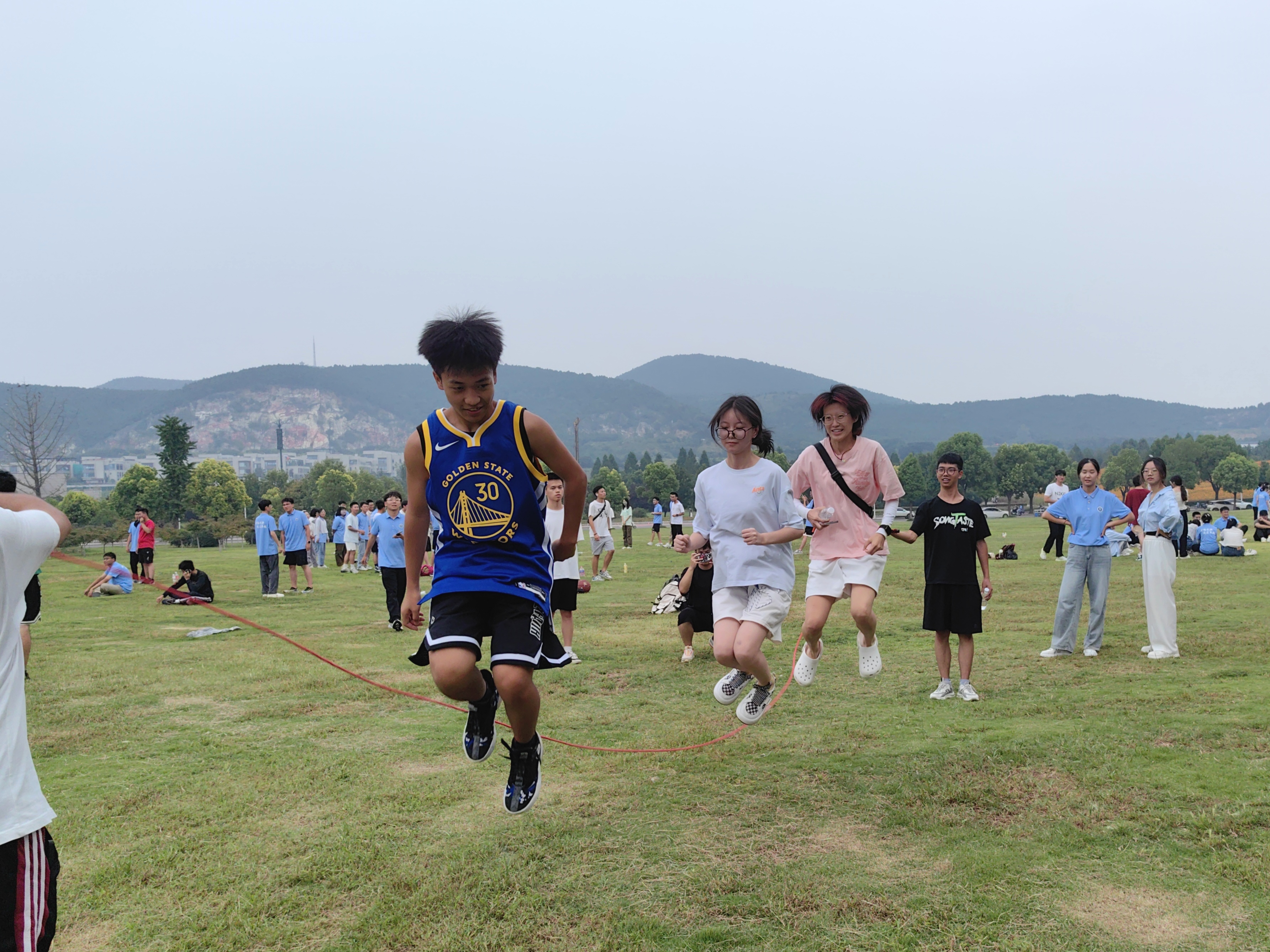 本次活动分为介绍接龙、游戏互动和合唱比赛三大部分。活动伊始,团委学生会成员带领各班新生进行自我介绍,相互增进彼此之间的了解。在班级游戏的环节中,不仅有掷沙包、踢毽子、斗鸡、翻花绳等唤起童年回忆的小游戏,还有许多既考验同学们的反应能力和身体素质,又培养团队默契度的游戏,例如“一穿到底”“心有灵犀”等。新生们积极参与,现场气氛轻松活跃,处处都是同学们的欢声笑语。游戏之外,每位新生也写下了一张给未来自己的明信片,将期望和鼓励的话语寄给一年后的自己。在班级合唱比赛的环节中,各班级高度重视,迅速选定班级合唱歌曲,之后便争分夺秒地进行准备,为大家带来了精彩的表演。最后,由评委团评选出前三名的班级,并发放奖品。