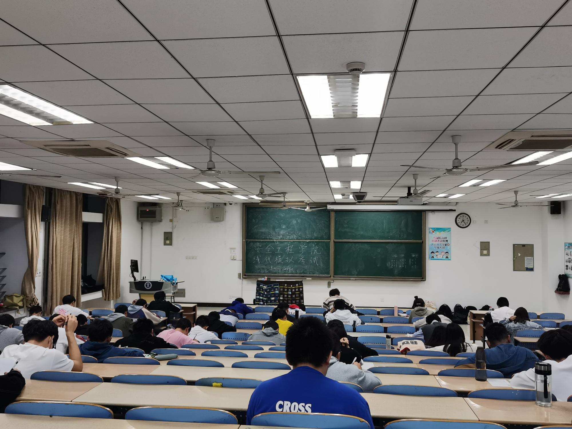 考试开始前,同学们有序进入考场,签到打卡并将手机上交至讲台前,随后陆续在自己的座位上落座,做好临考准备。晚上7点整,考试正式开始,监考人员宣读考场纪律并分发试卷,全体同学迅速进入考试状态。考试期间,同学们自觉遵守考场纪律,坚持诚信待考,仔细审题,潜心作答;监考人员分站在考场前后,严格监督考场纪律,认真负责,恪尽职守,确保考试公正可信。晚上8点45分,考试正式结束,监考人员收回并清点试卷后,同学们有序离开考场。本次考试顺利完成。