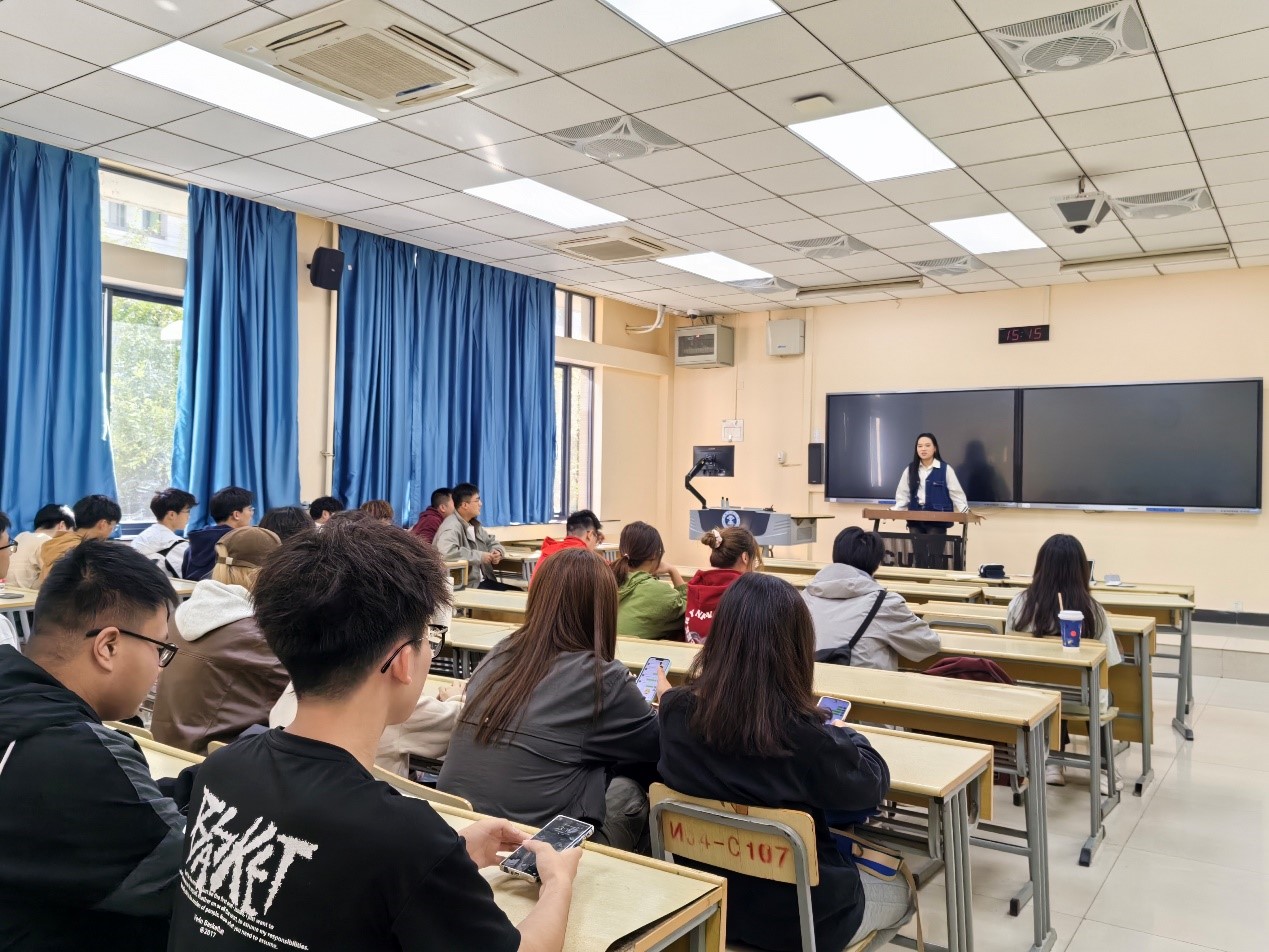 学生党员工作站、本科生第二党支部于博学楼4楼B106开展“朋辈相伴,助力向前”主题讲座,朋辈导师何欣受邀主讲,2022级4班全体同学参加此次讲座。