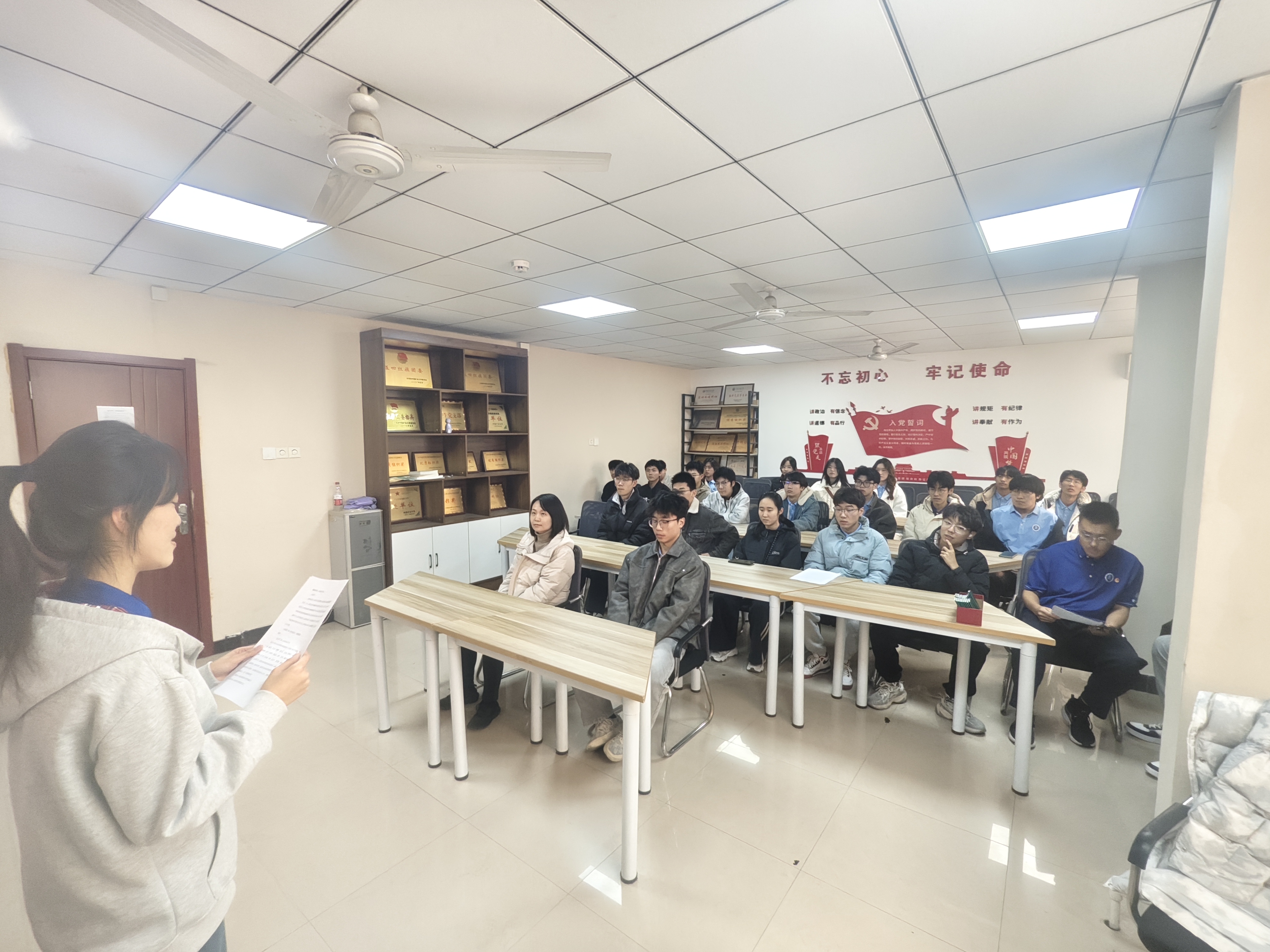团委于梅三五楼力行轩举行了新发展团员入团仪式。随着全部成员的到场,仪式在庄严的国歌声中拉开帷幕。