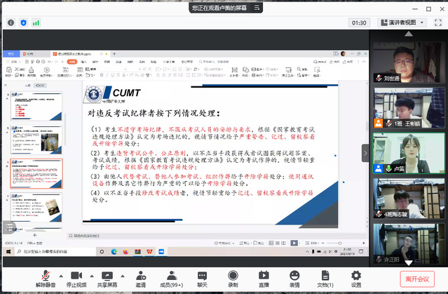 2021级校规校纪、廉洁文化及安全教育大会通过线上会议的方式召开。2021级辅导员刘世通、卢笛主持会议,2021级全体新生参与本次会议。