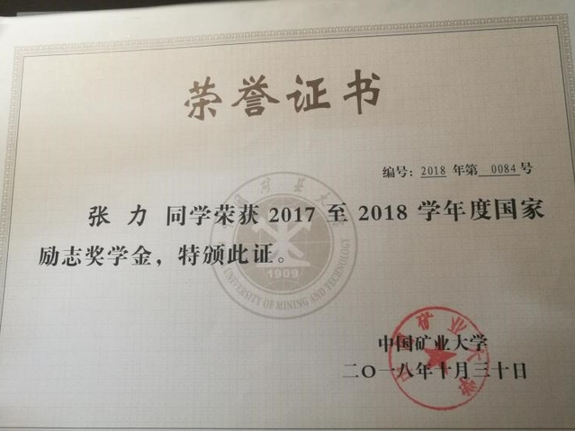 首届互联网+创业大赛一等奖、2017-2018年国家励志奖学金、2018-2019年国家励志奖学金、2019-2020校级一等奖学金、校级GMC企业管理大赛三等奖、院级军训先进个人、院级优秀共青团员、校级优秀共青团员
