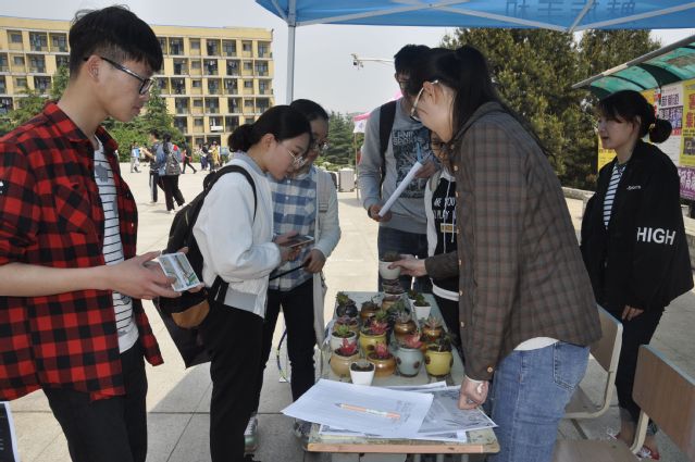 志愿者们提前来到二食堂广场,布置桌椅,摆放植株,本次活动的多肉植物由采购小组统一批发,并根据实际情况进行定价,确保价格合理实惠。本次义卖采用流动宣传和定点销售结合的方式。活动开始,一株株可爱的多肉吸引了一大批同学前来观看、询问。志愿者们耐心的给他们讲解多肉植物种植的注意事项并阐述本次义卖的目的,鼓励大家为改善贫困地区的学生的学习环境贡献自己的一份力量。同学们积极响应购买爱心多肉,两名志愿者负责记录下每一株多肉的售卖情况,确保公开透明。活动结束后各负责人带领志愿者清理现场,剩余的多肉植统一由980青协的同学回收。