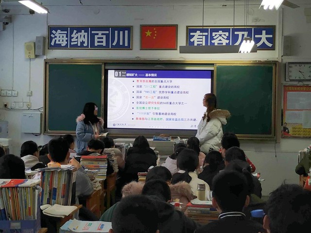三名学生组成实践团,分别于1月18日和1月21日重回母校—长岭中学,拜访老师,交流大学心得,并进入高三班级进行母校行宣讲活动。
