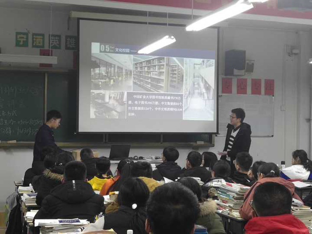 他们首先找到了自己的恩师,除了给老师带了点小礼物,还和老师谈了很多关于大学生活的话,往日严肃的老师看到自己教过的学生,也都不胜欣喜。之后,按照组长之前和老师商议过的那样,在高三的学弟学妹们上晚自习的时候,宣讲团队便到教室开始了他们的宣讲。