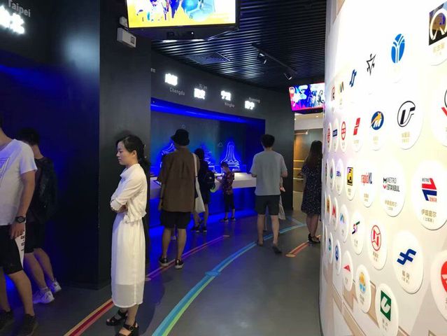 步入馆内,呈现在眼前的是全世界109个城市的地铁标志,四块触摸屏分别展示了伦敦、巴黎、纽约、东京、北京、上海、西安等世界著名城市地铁系统的奇闻趣事。其通过模型展示,述说广州公共交通发展史。从最初的人力轿子到横贯全市的地铁,交通工具的快速发展给市民出行带来了方便。