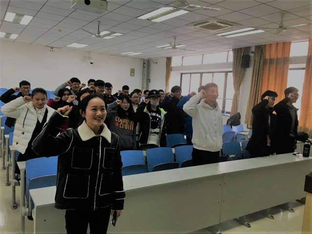 班长辛杰分享了自己对“一二·九”运动的理解感受,他说到:“‘一二·九’运动是在中国共产党组织和领导下的一次伟大的抗日救国运动,它永远刻在中国历史的丰碑上。虽然,我们现在没有战争,但爱国精神要时时刻刻铭记于心,好好学习,为中华之崛起而读书。”由亮同学也结合当今的国防情况与自己的所感所得,主动上台带来了一场精彩纷呈的演讲。同学们深受触动,相互交流、讨论自己的感受,将班级氛围推向高潮。会议最后,团支部共同郑重宣誓,重温入团誓词。