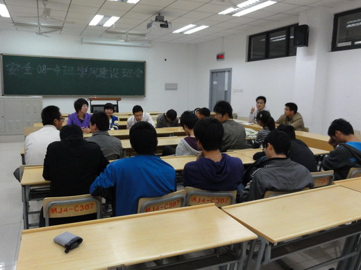 安全08-4班在教四C305成功举行了新学期的第一次学风建设主题班会。班会由班长李涛主持,全班同学悉数参加。