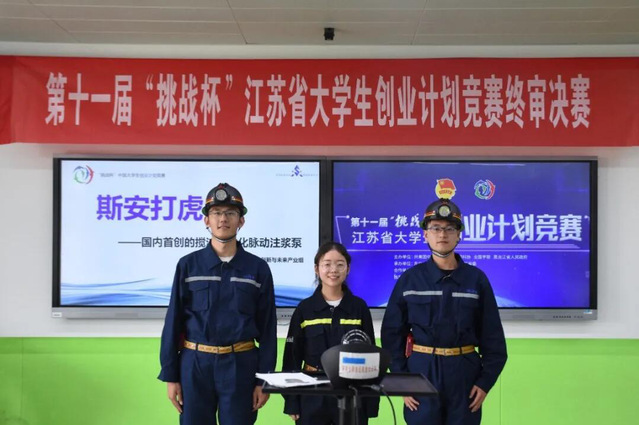此前,在第十一届“挑战杯”江苏省大学生创业计划竞赛中,翟成老师指导,丛钰洲、陈振宇等同学主持完成的“斯安打虎——全国首创的气动式搅注一体化脉动注浆泵”获得金奖,晋级国赛;蒋曙光老师指导,李中华等同学主持完成“国内首创温控胞衣阻火技术——煤矿防灭火领域的变革者”获得银奖。