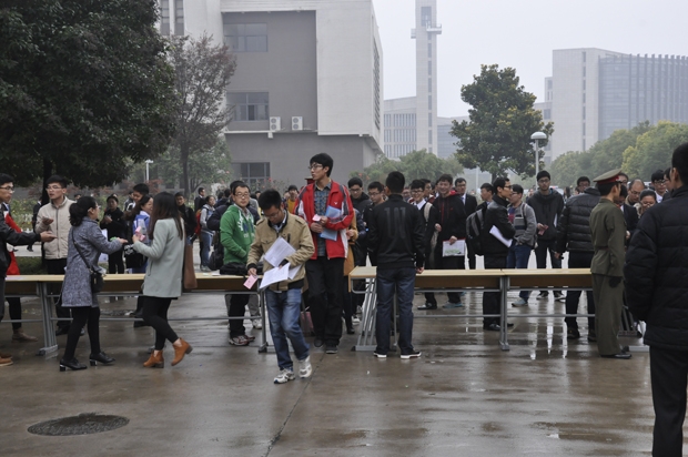的毕业生满怀自信与期待,早早的来到现场排队等候入场。招聘会现场a片无码