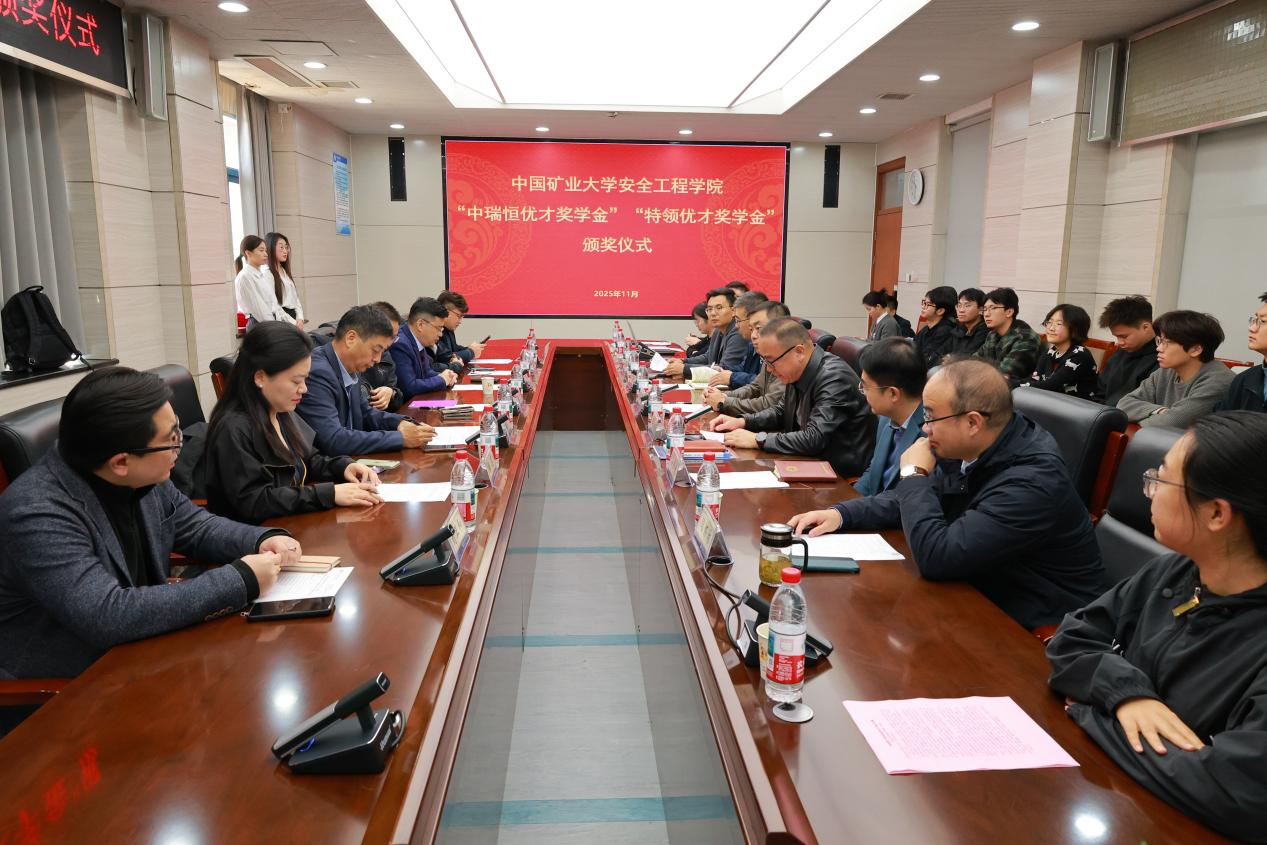 在矿业科学中心A412举办2024-2025学年度“中瑞恒优才”“特领优才”奖学金颁奖仪式。深圳市中瑞恒管理策划有限公司董事长李东、助理总经理李金虎;上海特领安全科技有限公司董事长张青、南通分公司总经理左军、江苏分公司副总经理张恋、业务中心总监张海龙、董事长助理刘正和,a片无码
