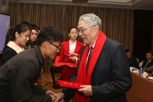 周世宁院士与袁亮院士亲自为获得奖学金的同学颁奖。他们亲切地与每一位获奖同学合影,向他们表达祝贺。