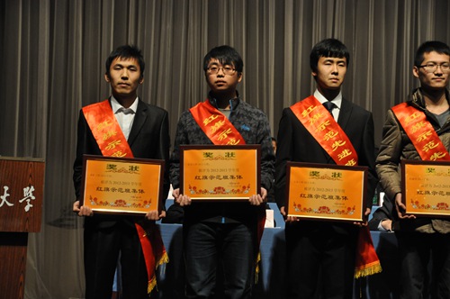 王李同学代表校级优秀学生上台领奖(左二)