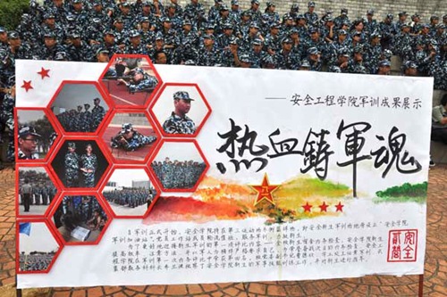 荣获“2013级军事技能训练先进单位”称号,13级辅导员孙婷老师被评为“军训优秀辅导员”,安全13-1班被评为“军训先进班级”,安全13-4班王晓霞等17名新生被评为军训先进个人。