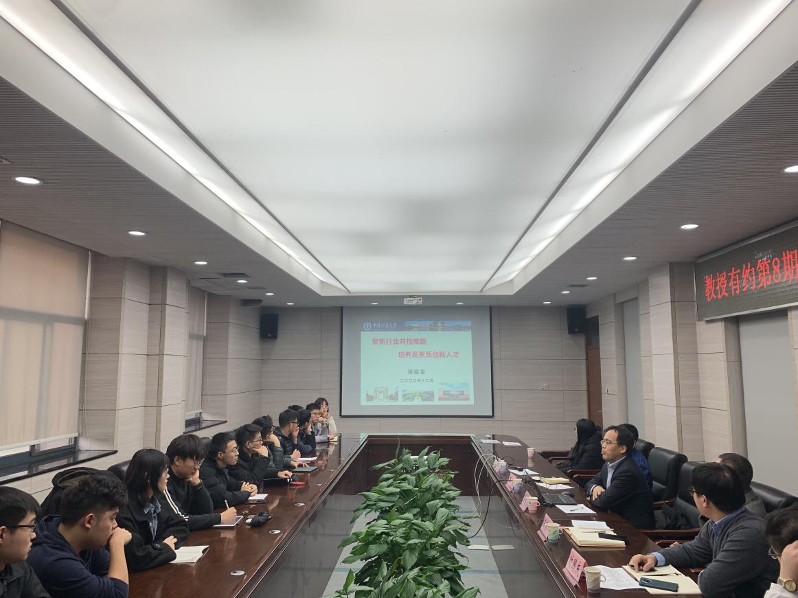 第八期“教授有约”——安全工程2018级国际班师生座谈会在矿业科学中心A412举办。副校长周福宝教授主讲。院党委书记王思华、2018级国际班班主任时国庆副教授、学工办主任刘世通以及2018级国际班全体学生参加本次活动。活动由王亮副院长主持。