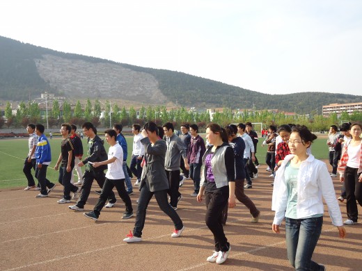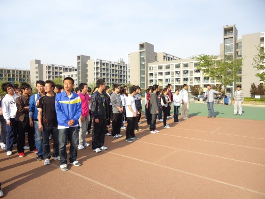 下午四点整,同学们准时到达第一田径场。负责人将方阵同学大致分为7行9列,按照人员身高错落排列,极为有序。没有太极训练时优美柔和的音乐,不变的是太极训练亟需的团结合作、整齐划一的精神。在负责人高昂的“立正、稍息、齐步走”口令中,同学们展开了积极的配合训练,以蓬勃的姿态投入到了操练过程中,精神饱满,昂首挺胸,起步有力,团结一致。待方阵进场仪式操练若干次后,负责人转而排练了届时a片无码