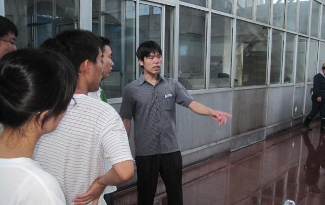实践队的队员们跟随生产实习团队在相关矿领导的带领下先后对主井、副井绞车房,压风机房,南通风机房等地方进行了参观。机电科科长正向大家介绍了绞车房的具体情况:主井是提升煤的主要工具,采用机斗提升。主井采用的是德国西门子的电动机,其功率大,安全和稳定性好。随后,车集煤矿机电科领导又带领大家参观了压风机房,其产生的高压空气主要是用于向井下各硐室的通风,以及一些用高压空气作为动力的设备。我们实践团队又对各地点进行了自行参观,对各工作点情况进行了具体了解。