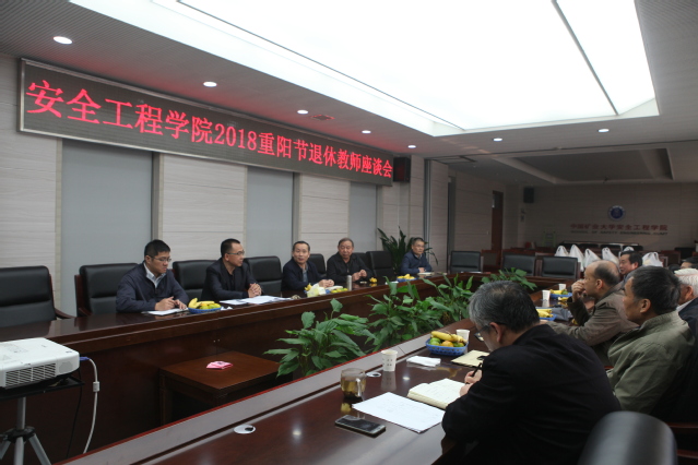在矿业科学中心A412举行了2018重阳节退休教师座谈会。院党委书记章毛平、院长王恩元、院党委副书记钱雄、副院长朱晓东、煤矿瓦斯治理国家工程研究中心副主任周劲锋以及院党政办公室、院工会相关负责人出席座谈会。