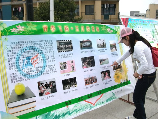 安全07-1班团支部的宣传板以丰富的内容,活泼的形式展现了班级的蓬勃朝气,更是好评如潮。