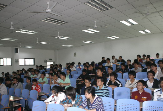讲座后,主办方还组织了经验交流会,08级优秀学生顾范君同学与09级同学们分享了自己的四级备考经验和应试窍门,并对同学们关心的问题进行了详细的解答,给同学们不少启发。