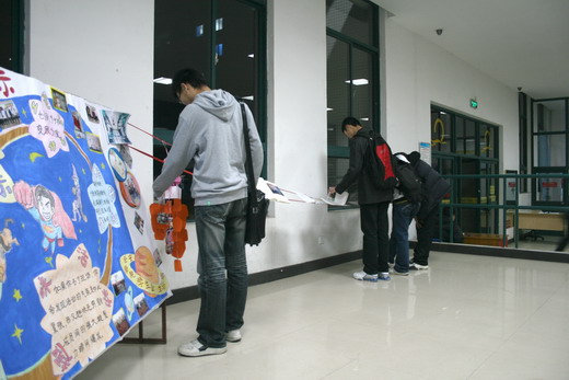 学生会生活部及新闻宣传中心制作,展出了此次系列活动中的宿舍人文环境设计、才艺展示、工艺品制作、宿舍相册制作及趣味活动比赛的相关照片及作品。梅三B414、B416等宿舍的精美相册以独特的创意和华丽的手工制作得到了评委的认可,也得到了驻足观看的同学的一致赞叹。