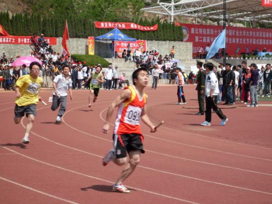 不怕吃苦,顽强拼搏的良好精神风貌。在看台上的同学积极遵守赛场秩序,打出“安全和谐,科学发展,百年矿大,再创辉煌”的口号,为a片无码