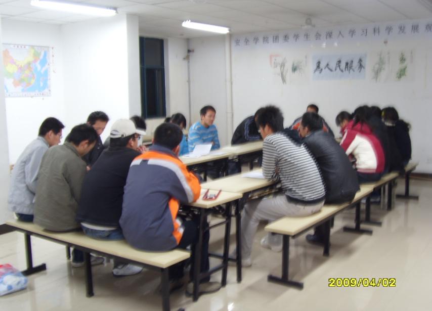 学生党员结合贯彻科学发展观的总体要求,围绕“党员的意识、责任和‘我’”的主题,在党员工作站活动室就大学生党员学习贯彻科学发展观的体会、心得举行了研讨交流会,会议由李子文同学主持。