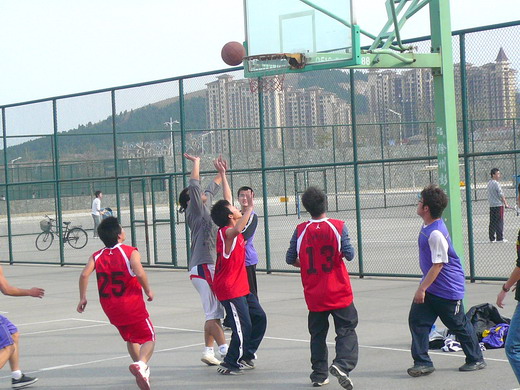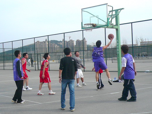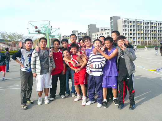 计科09-6班的同学在梅苑篮球场进行了一场篮球友谊赛。比赛吸引了两班的同学前来加油助威。
