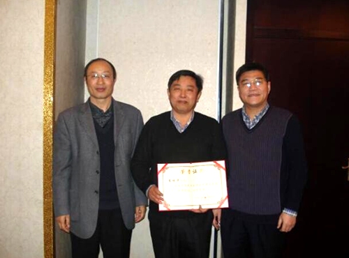 徐州市政协副主席、民进徐州市委主委孙红旗在校统战部长李来成陪同下专程为李增华教授颁发了证书。