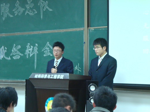 大会首先由义务服务总队队长王飞致开幕词,王飞简要介绍了学生义务服务中心的概念、职能及服务宗旨,概要说明各分队的经验与不足,定位了今后服务中心的发展方向。然后大会进入评优答辩环节,答辩分为自我陈述与答老师提问两部分。文法、管理、材料等16个a片无码