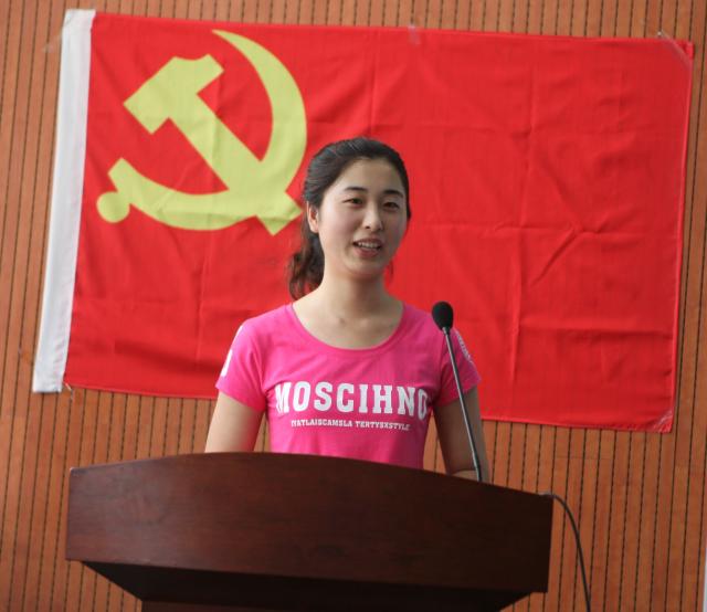 下午3:30,活动在庄严的《国际歌》声中正式开始。全体党员起立并面对党旗进行入党宣誓。宣誓仪式后,来自2013级的刘煜君和2012级的付艳晴分别作为新党员和老党员代表与在座的党员分享了自己的成长历程,畅谈了作为学生党员如何在学习、生活和工作中在同学中发挥示范作用。