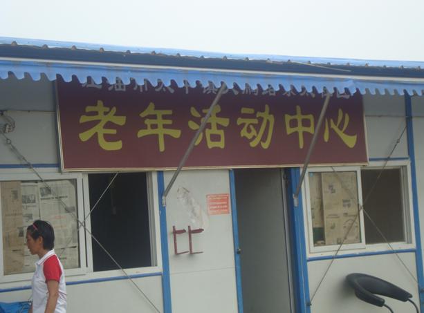 在该板房区,同学们看到了灾区人民祥和安宁的生活,家家安居乐业。为了丰富板房区百姓的业余生活,社区内设立了社区服务站、老年活动中心、家园碟片店、小卖部、社区医务所、小餐馆等设施,尽管有些简陋,但灾区群众的物质和精神生活得到了一定的保证。