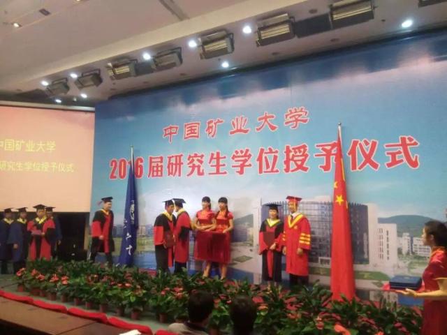 教授委员会主任王德明教授为研究生颁发学位证书,副校长缪协兴教授为研究生拨穗儿。身穿学位服的毕业生、到场的老师和毕业生家属们共同见证了这一激动时刻。