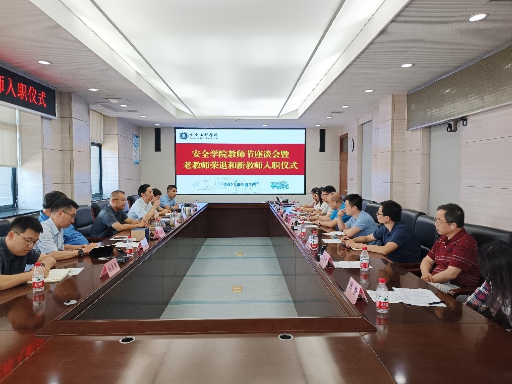 在矿科A412会议室召开教师节座谈会暨老教师荣退和新教师入职仪式。院党委书记曲颂、教育部第三批“全国高校黄大年式教师团队”负责人林柏泉教授、荣退教师刘贞堂教授、副院长郭梅香、院工会主席戚绪尧,以及部分教师代表、新教师、各科室主任参加了座谈会。座谈会由副院长郭梅香主持。