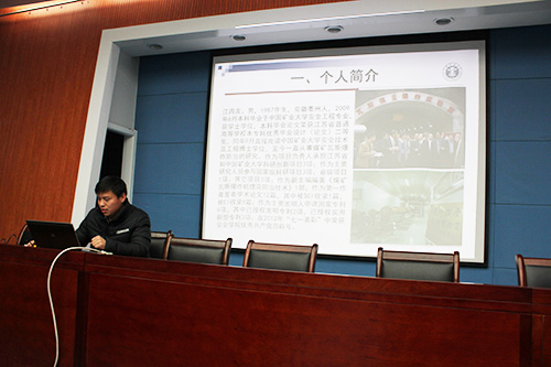 会上,首先给大家做报告的是程远平教授课题组的安丰华博士。他针对自己的研究课题“煤与瓦斯突出孕育过程机理模拟及应用研究”进行了讲解,分别介绍了该课题的立项背景、主要内容以及应用研究等方面内容,并对煤与瓦斯突出机理及数值模型、煤与瓦斯突出过程四个阶段、煤体力学特性等发表了自己的看法,让大家对煤与瓦斯突出孕育过程机理有了进一步的认识。