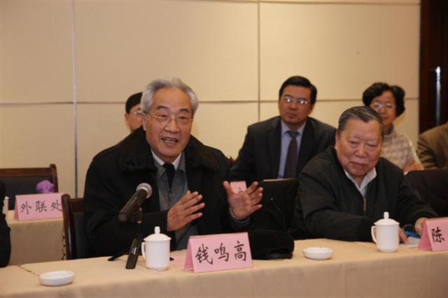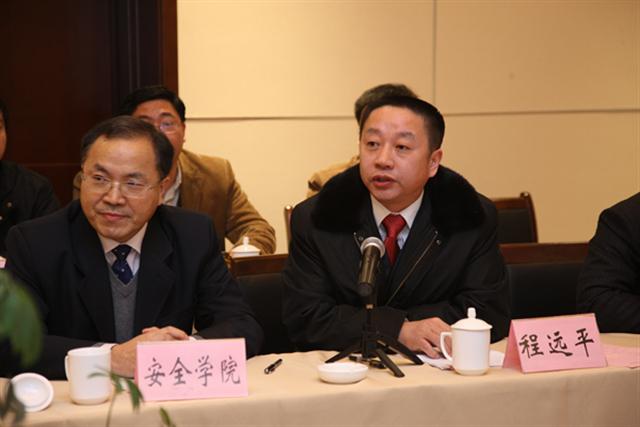 教授当选中国工程院院士表示衷心的祝贺。钱鸣高院士说,我国煤炭目前每年30亿吨的产量就要有相应人才的支撑,长江后浪推前浪,年轻人必须尽快成长起来,弥补由于文革带来的人才缺失,承担起时代赋予的责任,而袁亮院士就是其中的代表。矿大的主要任务之一就是培养人才,而且必须培养出高端人才来,人无头不走,鸟无头不飞,一个学科一个团队,没有高素质的带头人很难发展起来。煤炭行业的科技还有有广阔的发展空间,希望学校的年轻人多向袁院士学习,深入钻研业务,凝练科研方向,进一步营造浓郁的学术氛围,更期望袁亮院士带领矿大做出新的更大业绩。陈清如院士说,这次新增院士,煤炭炭系统有三位同志当选,并且跨三个学部,很不容易,是个大丰收,因为我们煤炭系统原先有11个工程院院士,跨两个学部,9个在能源与矿业工程学部,2个在化工、冶金与材料工程学部。30亿吨煤开采出来,不仅仅是采矿科学的任务,还需要机械,电信等等各个学科的协作,希望今后煤炭系统当选的院士能跨更多的学部如机械与运载工程学部、信息与电子工程学部、环境与轻纺工程学部等。袁亮院士在淮南煤矿地质这么复杂的条件下,实现瓦斯与煤的共采非常不容易,当选院士当之无愧,他还很年轻,开拓能力,接受能力都很强,希望带领大家一起进行科学攻关。周世宁院士说,这次袁亮院士进入矿大接受聘任,意味愿意承担起新的责任,把淮南这样一个大的生产基地和矿大这一个大平台真正有着实质性的结合起来,这样的前景国内没有,从全世界来讲也很难找到这么好的一个机遇,大家要其齐心协力,尽快将安全学科发展壮大起来,在此基础上,辐射影响整个采矿、机电、机械等学科的快速发展,相信袁亮院士会给学校的发展带来新的动力。