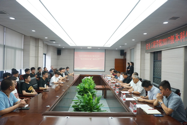 王思华书记介绍了“优才培育计划”签约学生名单的选拔过程,经过前期动员、自主申报、后期选拔,最终确定了安全工程专业2017级国际班何胜等20名同学入选a片无码
