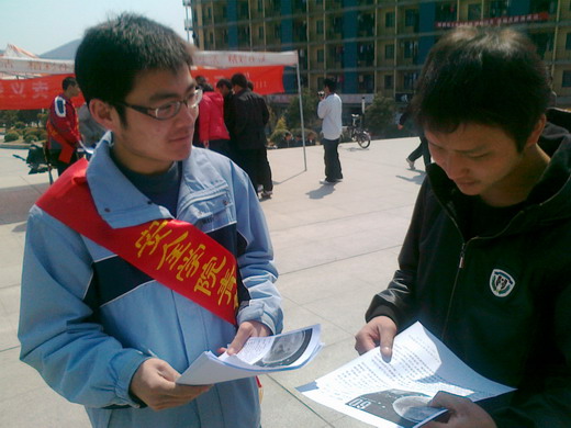 活动过程中,志愿者们印发了有关“地球一小时”活动及相关节能环保小知识的宣传单。在发放传单的同时,志愿者们还积极向过路的同学讲解低碳生活的小窍门,并号召个人和团体自发为我们的地球家园做出一个小小的改变。